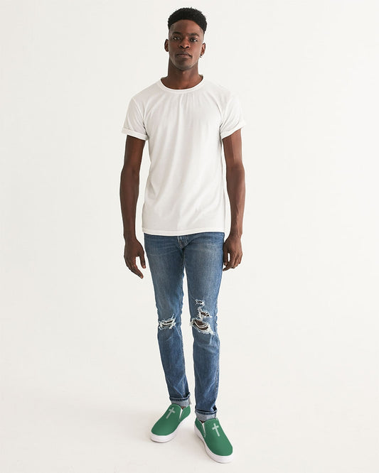 Simple Cross: Men's Green Canvas Slip On Shoe